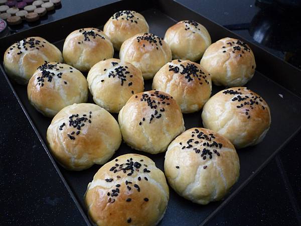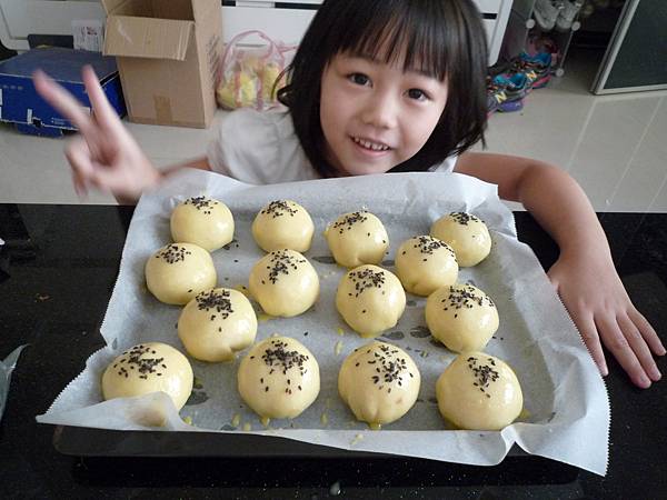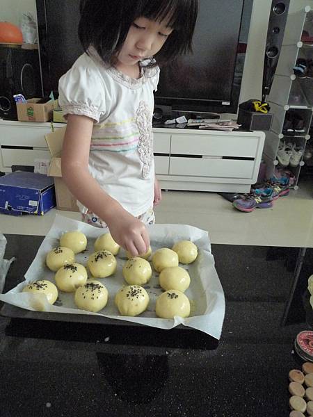 最後一個步驟-灑上芝麻粒,昀潔還是搶著做阿!!