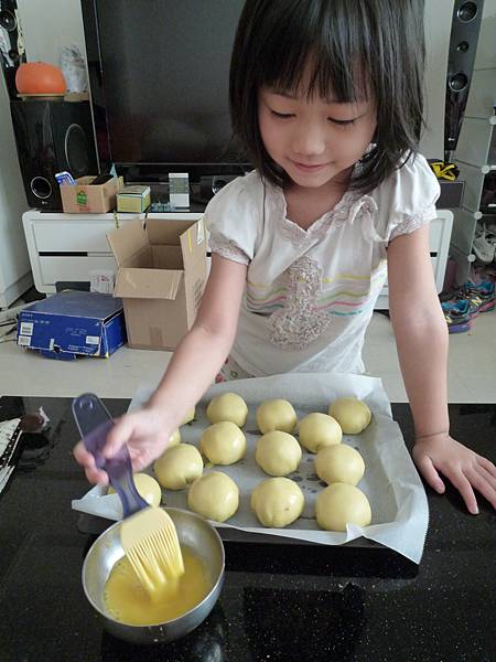 在表面抹上蛋黃液,這個簡單的工作就交給昀潔囉!!